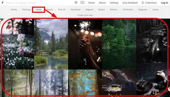 또, 홈 화면 상단에 있는「Forest(숲)」,「People(사람)」등의 카테고리를 클릭하면, 그 항목에 따른 이미지가 표시됩니다.