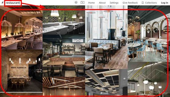 시험으로「restaurant(레스토랑)」이라고 입력해 보면, 역시 시각적인 아름다움이 느껴지는 레스토랑의 이미지가 표시됩니다.