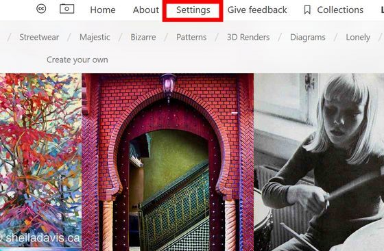 상단의 "Settings"를 클릭하면 이미지 표시 스타일을 조정할 수 있습니다.
