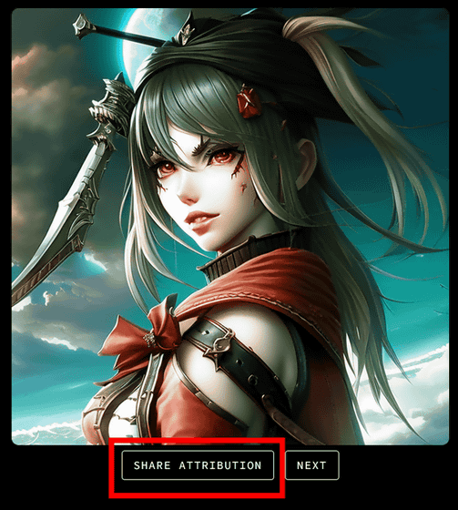 생성된 이미지 아래의 "SHARE ATTRIBUTION"을 클릭합니다.