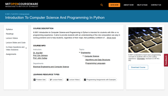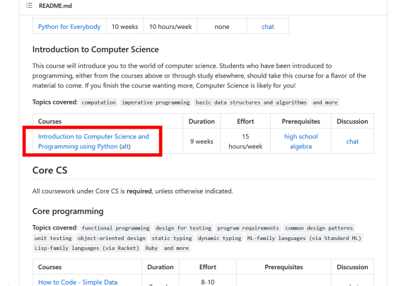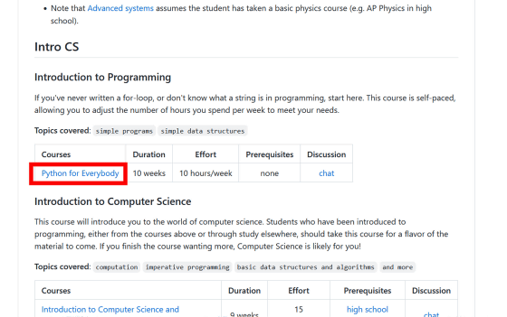 이번에는 매사추세츠 공과대학이 공개하고 있는 컨텐츠가 열렸습니다. 이와 같이 OSSU의 코스는 온라인상에 흩어져 있는 다양한 콘텐츠를 체계적으로 늘어놓아 컴퓨터 과학을 체계적으로 학습하기 쉽게 한 것입니다.