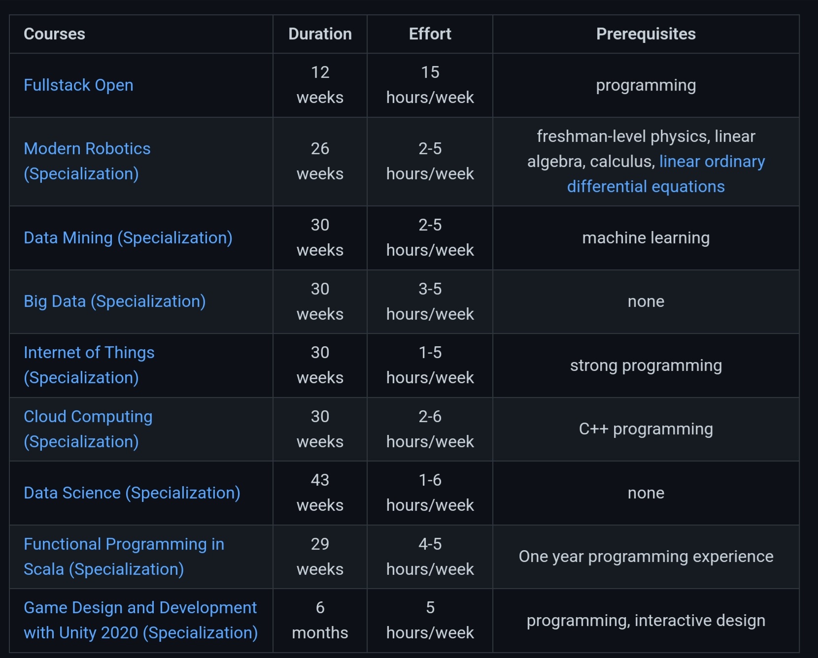 코스의 수강은 1명도 가능하고, 그룹도 가능하며, 수강하는 타이밍이나 간격도 개인의 재량에 맡겨져 있습니다. 여러 사람이 모여 합숙과 같은 형식으로 워크샵을 실시하거나, 평일 밤이나 휴일 등으로 정해서 진행하거나, 좋아하는 방식으로 학습을 진행할 수 있습니다. OSSU에 의하면, 신중하게 계획을 세워, 주 20시간의 학습 시간을 확보할 수 있으면, 약 2년에 모든 코스를 마치고 졸업할 수 있다고 합니다. 또한 OSSU는 학습 계획을 수립하는 데 도움이 되는 스프레드시트도 공개하고 있습니다.