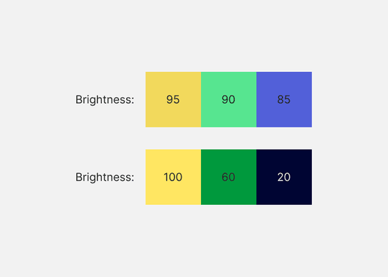 색에 다른 명도를 설정하면, 색조뿐만이 아니라 명도에도 특징이 있는 것처럼 느껴져, 색끼리의 경합이 적어져, 보다 좋은 배색이 됩니다.