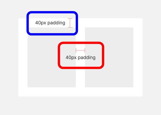 아래의 이미지에 있어서, 이너 패딩은 붉은색 부분, 아우터 패딩은 파란색 부분.