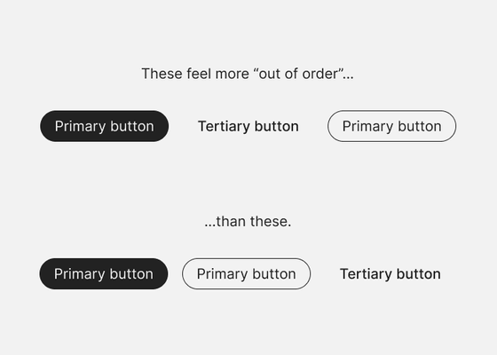 행이나 열에 몇 개의 요소가 나란히 있어, 시각적으로 무거운 요소가 있는 경우, 가장 무거운 요소를 먼저, 가장 가벼운 요소를 마지막 순서로 배치합니다.