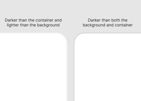 배경과 컨테이너의 명도차는, 어두운 인터페이스에서는 12% 이내,