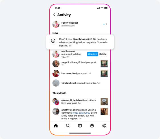 또한 10대는 자신의 개인정보 보호 설정을 검토하고 제한하라는 알림을 받습니다. 10대 소식에 누군가가 댓글을 달거나 10대를 다른 게시물에 태그 하거나 멘션 한 경우, 또는 릴이나 가이드에 10대 콘텐츠가 포함된 경우 10대는 개인정보 설정을 확인하는 알림을 받고 다른 사람과의 상호 작용을 중지하는 옵션이 제공됩니다.