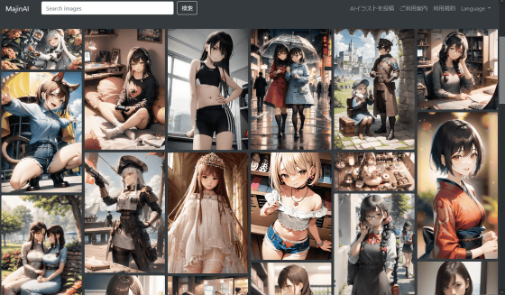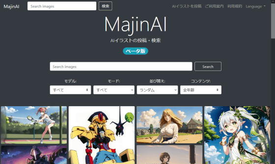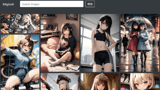 위의 링크에서 MajinAI에 액세스 하면 화면 상단에 검색란이 표시되고 하단에는 그림 목록이 표시됩니다.