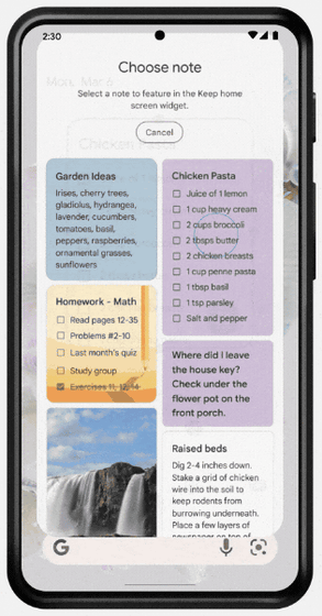메모 앱 "Google Keep"의 싱글 노트 위젯을 사용하면 홈 화면에서 메모를 관리하거나 ToDo 목록을 확인할 수 있습니다. Google Keep에서 메모에 추가된 알림 및 이미지를 표시할 뿐만 아니라 스마트워치와 동기화하므로 일정을 놓치지 않습니다.
