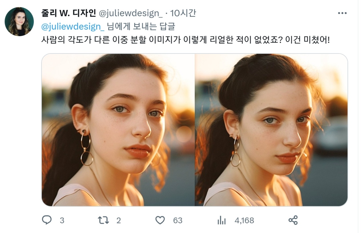 "동일한 인물의 얼굴을 다른 각도에서 묘사"라는 복잡한 작업을 문제없이 해내고 있습니다.