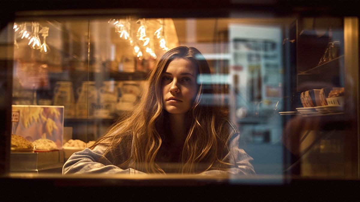 위에서 언급했듯이 "Midjourney V5"에서는 매우 아름다운 이미지를 만들 수 있지만 약점도 존재합니다. 예를 들어, 아래의 이미지는 언뜻 보면 실사풍으로 보입니다만, 잘 관찰해보면「이미지 좌측 하단의 진열물이 유리 케이스를 관통하고 있다」,「간판에 읽을 수 없는 수수께끼 언어가 적혀 있다」라는 비현실적인 부분도 있습니다.