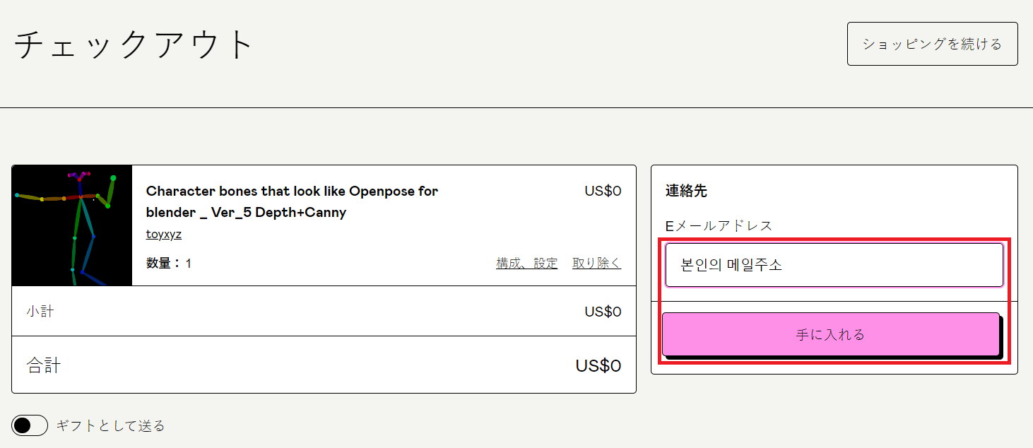 메일 주소 입력란이 표시되므로 입력하고 OpenposeBone을 다운로드.