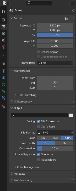 Frame Start를 1, End를 50, Step을 1로 설정합니다.