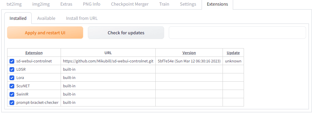 설치가 완료되면 설치된 탭에 ControlNet이 표시됩니다.