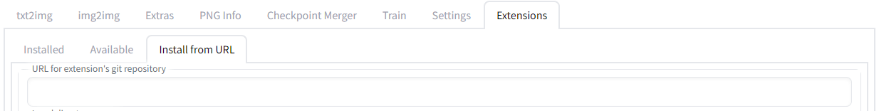 stable-diffusion-webui(Automatic1111)를 열고 Extensions 탭을 엽니다.