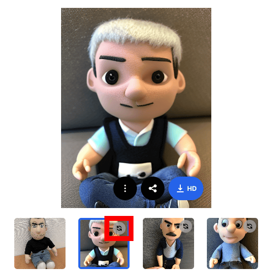 생성 결과가 마음에 들지 않으면 썸네일의 업데이트 표시를 클릭합니다.