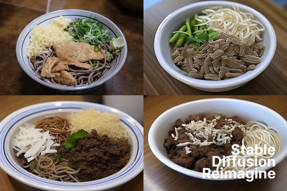 냉모밀 사진을 입력해 보니, 원래 사진의 분위기만 남은 수수께끼의 음식이 생성되었습니다. ㅋㅋㅋ