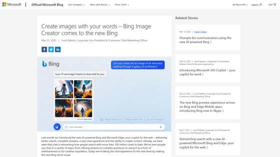 Microsoft는 2023년 2월에 검색용으로 커스터마이즈 한 채팅 AI 'GPT-4'에서 동작하는 '새로운 Bing'을 발표했습니다.