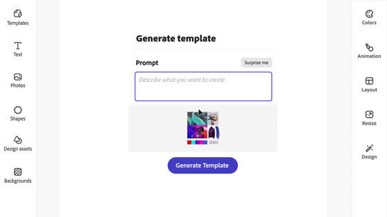 Mood 보드에서 템플릿 만들기를 입력하고 Generate Template를 클릭합니다.