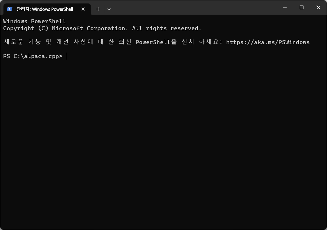 "alpaca.cpp" 폴더에 "ggml-alpaca-7b-q4.bin"파일이 있으면 모델 데이터 준비가 완료됩니다.