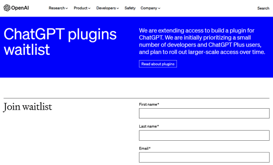 ChatGPT의 플러그인은 아직 테스트 단계로, 아래의 링크로부터 웨이트 리스트에 등록할 수 있습니다. 그러나, 플러그인의 개방은 개발자와 ChatGPT Plus 회원에 우선한다고 합니다.