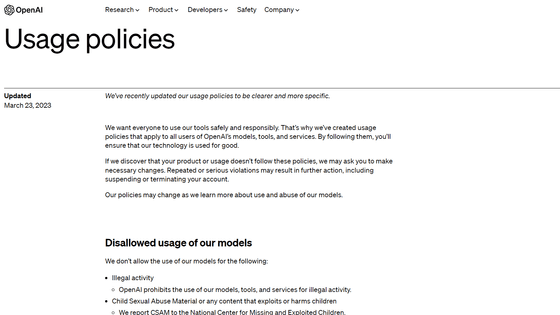 OpenAI는 ChatGPT를 비롯한 툴이나 서비스의 사용에 대해 2023년 3월 23일에 이용 약관을 개정하여, 기존보다 명확하고 구체적인 이용 약관을 제시했습니다.
