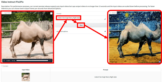 또, Text2Video-Zero에는 「문장을 입력하여 영상 생성」기능 이외에, 「문장과 참고 영상을 입력하여 영상 생성」기능도 탑재되어 있습니다.