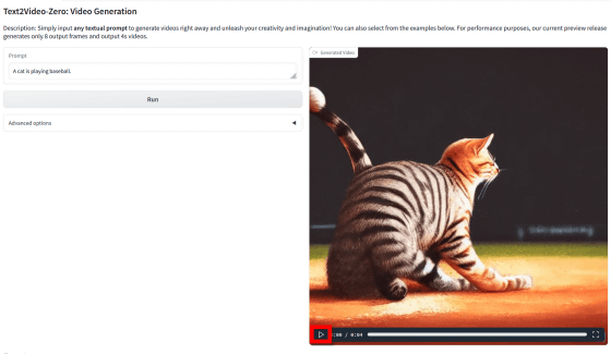 2023년 3월 25일, 동영상 생성 AI 「Text2Video-Zero」의 데모 앱이 공개되었습니다.