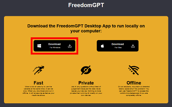 FreedomGPT는 서버의 혼잡에 관계없이 사용할 수 있는 로컬 앱 버전도 준비되어 있습니다만, 대기자 리스트가 발생하고 있는 상황입니다. 로컬 앱의 대기 리스트에 등록하려면 다음 링크를 방문하십시오.
