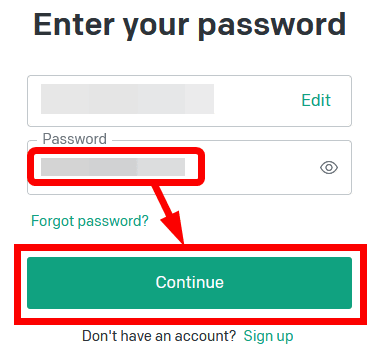암호를 입력하고 "Continue"를 클릭하십시오.