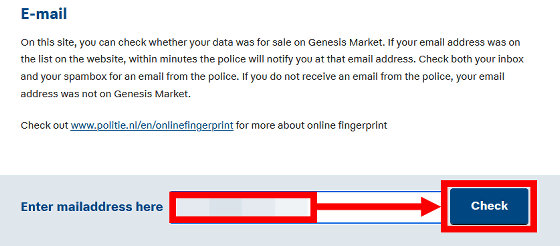 또한 네덜란드 경찰은 'Genesis Market'의 폐쇄에 맞춰 '자신이 피해를 입었는지 확인할 수 있는 웹사이트'를 공개하고 있습니다. 그 확인 사이트는 아래입니다.