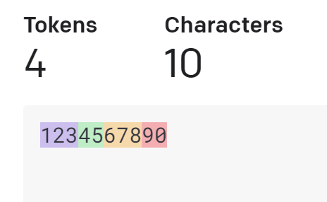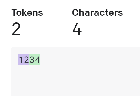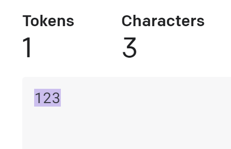 숫자를 입력해 보았습니다. 3 문자까지가 1 토큰...