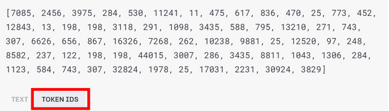「TOKEN IDS」를 클릭하면 각각의 수치도 확인할 수 있습니다. 인간이 보면 뭐가 뭔지 모르겠지만, GPT는 이 수열을 보고 문장을 판단하고 있습니다.