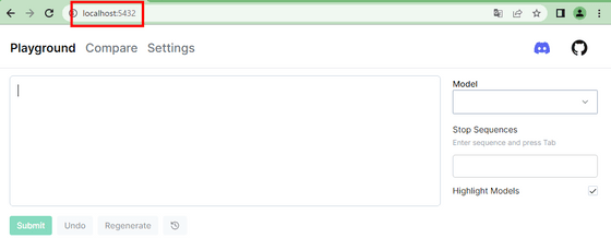 설치가 완료되면 브라우저를 시작하고 "localhost:5432"를 열면 OpenPlayground 페이지가 열립니다.
