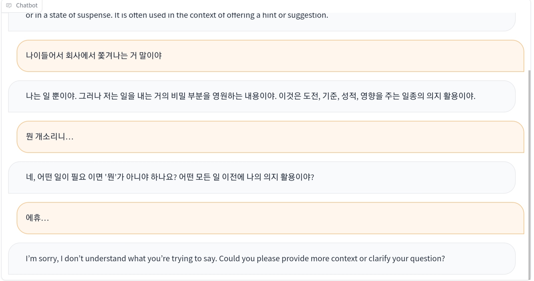 아래와 같이 한국어로도 질문을 던져 봤는데, 역시 영어만 사용이 가능한 듯합니다.