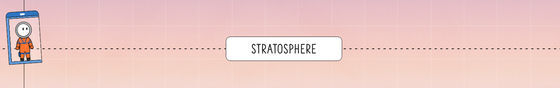 고도 1만 5000미터를 넘으면 성층권에 들어갑니다. 성층권에는 오존층이 있어 유해한 자외선으로부터 인간을 지켜 줍니다. 대류권에서는 고도가 올라갈수록 기온이 내려갔습니다만, 성층권에서는 고도가 오를수록 기온이 높아집니다.