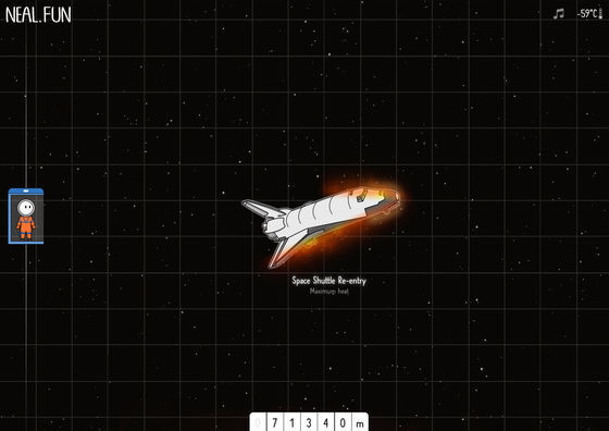 우주 왕복선의 대기권 재진입은 고도 71,000m 주변에서 수행됩니다.