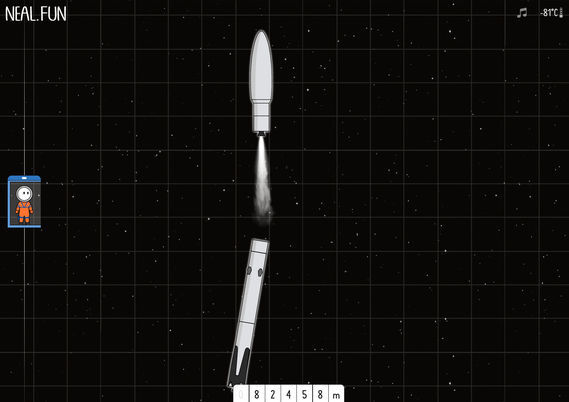 SpaceX의 재사용 가능한 로켓인 팔콘 9가 제1탄 부스터를 분리하는 것이 고도 8만 2000미터 부근.
