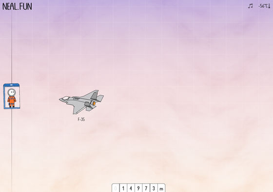 고도 1만 2000미터를 넘으면 기압이 낮아져 뜨거운 물을 끓이는 데 필요한 온도도 낮아져 물이 불과 54도에서 끓게 됩니다. 또한 고도 1만 3000미터당 제트기류가 발생, 제트 기류는 최대 시속 450km에 달할 수 있다고 합니다. 주변을 날아가는 것은 F-35(약 1만 4900미터)입니다.