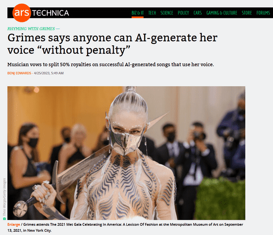 캐나다 출신의 뮤지션으로, 일론 머스크와의 사이에서 대리모를 통해 아이를 출산한 것으로도 유명한 그라임스(Grimes)가, 「히트했을 때의 로열티를 나눠 갖는 조건으로 자신의 목소리를 페널티 없이 사용해 자유롭게 곡을 만들 수 있게 하겠다」라고 발표했습니다.