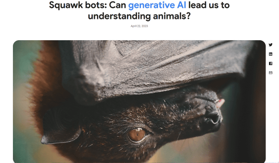 최근에는 AI를 이용한 이미지 생성과 고성능 채팅이 주목을 받고 있지만, AI는 예술뿐만 아니라 다양한 과학적 연구에 도움이 될 가능성을 가지고 있습니다. 새롭게, Google의 클라우드 서비스인 Google Cloud가, 기계 학습을 이용해 동물과의 커뮤니케이션을 실현하려고 하는 비영리 단체·Earth Species Project의 대처에 대해 블로그에서 소개했습니다.