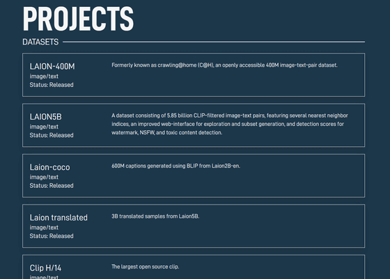 또한 LAION은 이미지 인식 모델의 CLIP 및 그 벤치마크 등의 도구도 공개하고 있습니다.
