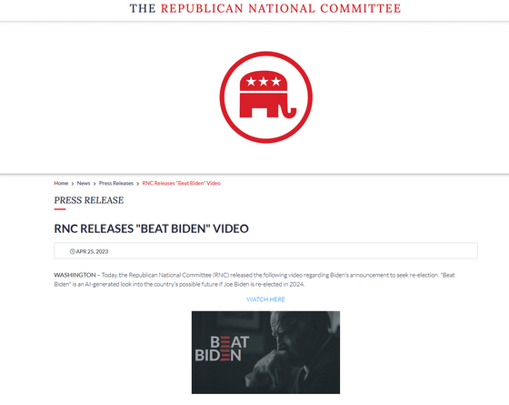 미국 조 바이든 대통령이 2023년 4월 25일에 약 1년 반 후인 2024년 11월 5일에 실시되는 2024년 미국 선거에 출마를 공식적으로 표명했습니다. 현직 대통령을 후보자로 두고 2기째를 목표로 하는 민주당에 맞서 공화당이 '바이든 대통령이 재선될 경우 발생할 수 있는 문제'를 이미지 생성 AI로 만든 정치광고 영상을 공개했습니다.