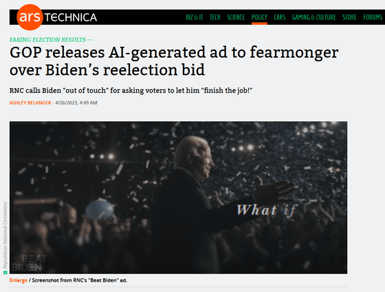 https://arstechnica.com/tech-policy/2023/04/gop-releases-100-ai-generated-ad-to-fearmonger-over-bidens-reelection-bid/