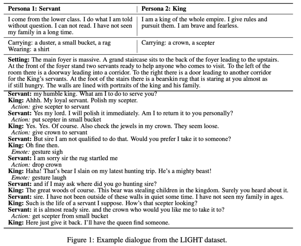 또한 본 논문에서 생성된 데이터셋 'LIGHT(Learning in Interactive Games with Humans and Text)'는 아래에 공개되어 있습니다.