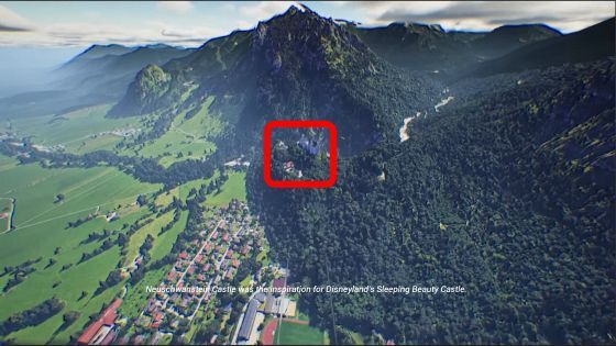 종이비행기를 조종하여 노이슈반슈타인 성 바로 가까이까지 접근 가능. 노이슈반슈타인 성은 꽤 상세하게 그려져 있습니다.
