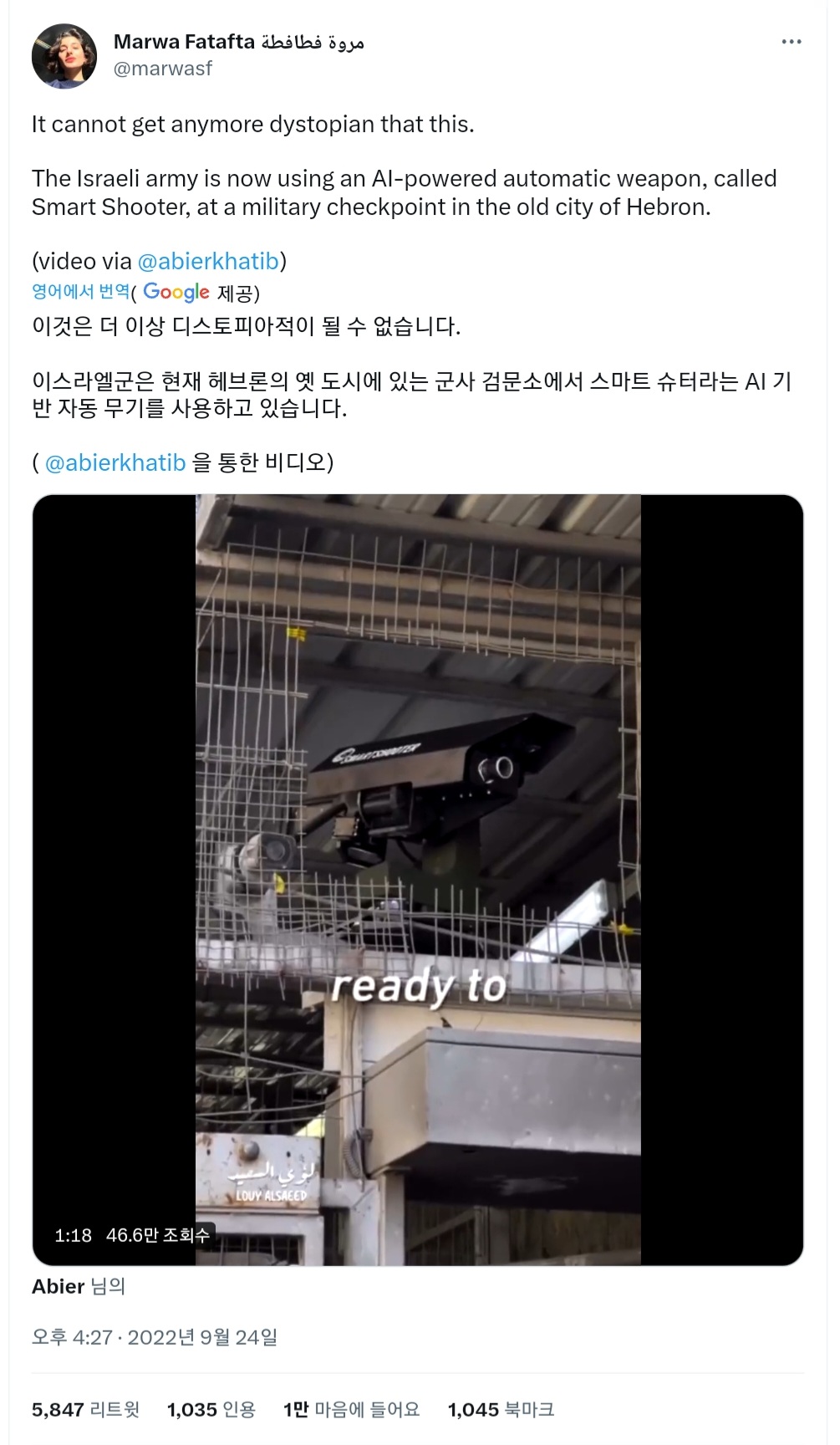 덧붙여 이 종류의 터렛은 새로운 것은 아니고, 한국은 북한과의 비무장 지대를 따라 자동 포탑을 설치하고 있으며, 이스라엘에서도 AI탑재 터렛이 전지에 배치되고 있습니다.