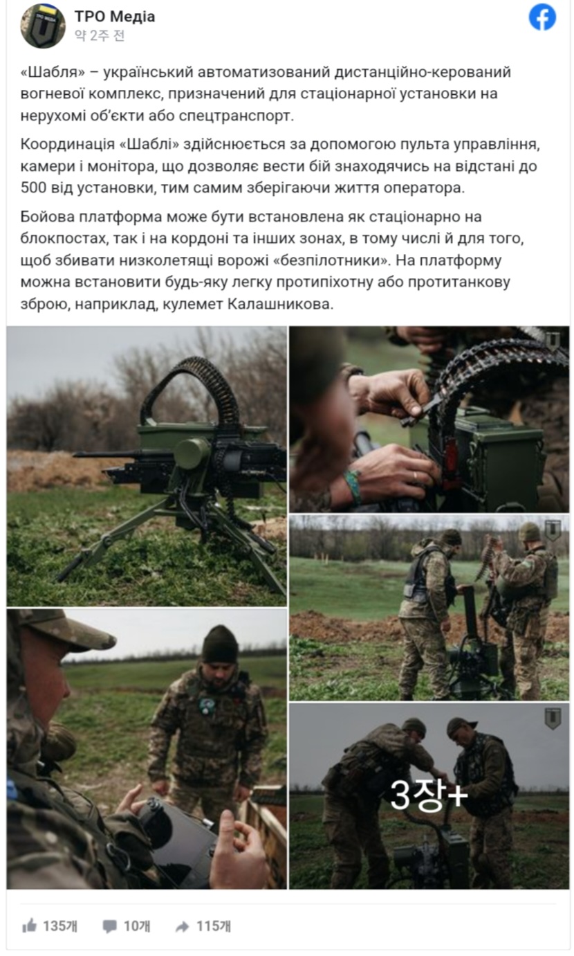 우크라이나 미디어 TPO Media가 Sabre를 실제로 군에서 도입하고 있는 모습을 소개하고 있습니다. TPO Media는 "Sabre"는 고정물 및 특수 차량 설치용으로 설계된 우크라이나의 자동 원격 조작형 방어 시스템입니다.