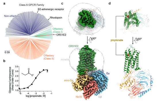 듀크 대학의 마츠나미 히로아키 준 교수는 후각 수용체의 연구를 해온 인물 중 한 명으로, 캘리포니아 대학 샌프란시스코의 생화학자인 아시시 맨글리크 씨와 크리스천 빌레스뷔레 씨와 협력하여 코와 장, 신장, 전립선 등에서 보이는 GPCR "OR51E2"를 후각 신경 이외의 배양 세포 상에서도 성숙하도록 유전자를 변경했습니다.
