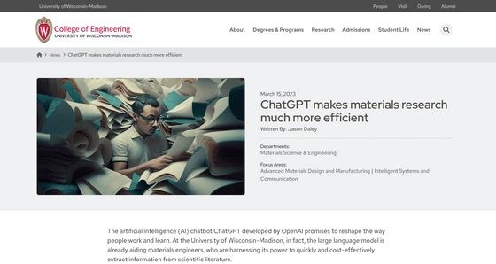 위스콘신 대학 매디슨 교의 교수가 ChatGPT를 사용한 재료공학 연구에서 큰 성과를 올렸다고 보고했습니다.